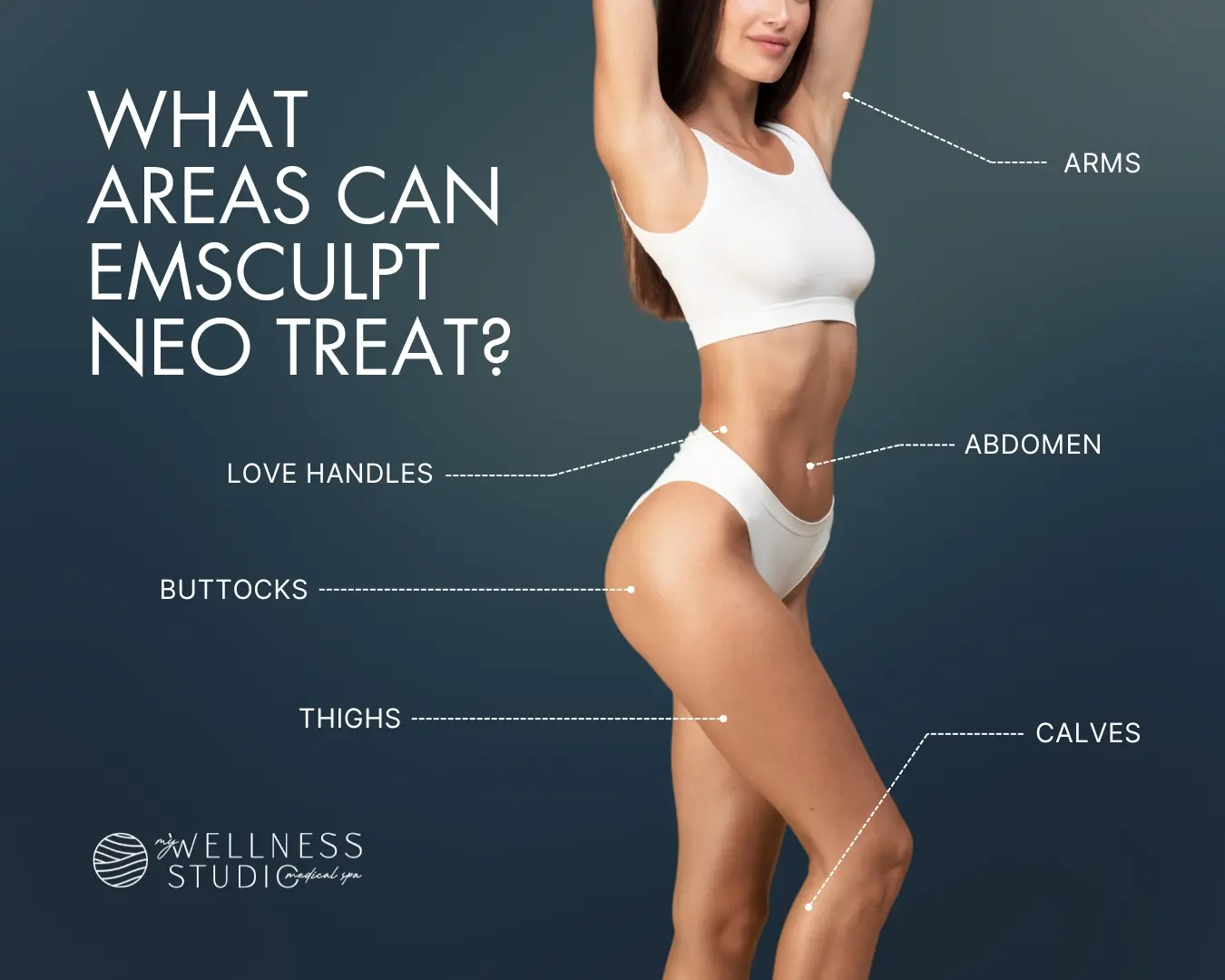 • Expert Emsculpt NEO Provider in Leesburg, FL: Choosing My Wellness Studio for Emsculpt NEO in Leesburg, FL, offers several advantages. We provide the innovative Emsculpt NEO treatment, a noninvasive body contouring procedure that effectively targets both fat elimination and muscle enhancement in a single, efficient 30-minute session.